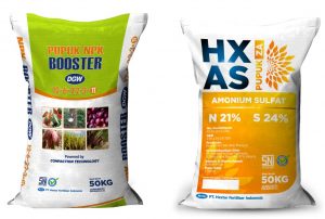 NPK COMPACTION DGW 15-15-15-TE merupakan pupuk majemuk berbentuk granul berwarna biru. Di produksi menggunakan Teknologi Compaction, NPK COMPACTION DGW 15-15-15+TE memiliki kandungan unsur hara yang lengkap, diantaranya Nitrogen, Phospate dan Kalium masing-masing sebesar 15%, Magnesium 2%, Zinc 1% dan Boron 0,5%. Pupuk ini diaplikasikan dengan dosis 150 Kg/Ha dengan cara ditaburkan merata. HX AS merupakan pupuk tunggal ZA dengan kandungan Nitrogen 21% dan Sulfur 24%. Dosis aplikasi HX AS sebesar 50 Kg/Ha dengan cara ditaburkan merata.